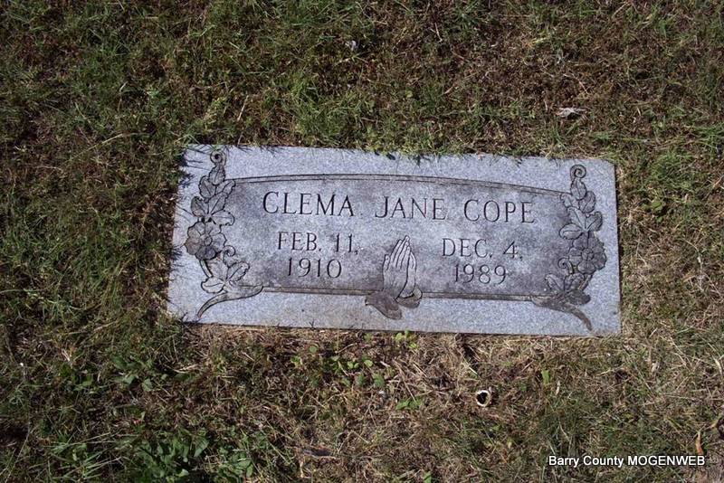 | COPE, Clema Jane (STUMPFF) | Feb. 11, 1910 Cato, Barry Co., MO |