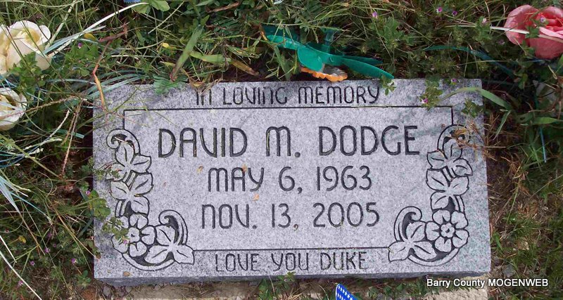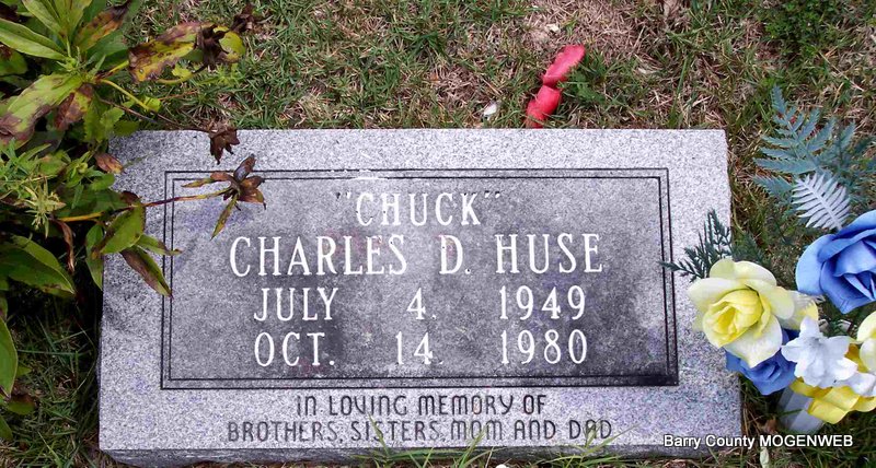 | HUSE, Charles Daniel "Chuck" | Dec. 4, 1949 | Oct. 14, 1980 | Inscription: "In Loving Memory, Brothers, Sisters, Mom & Dad" - Research Note: Son of Charles Opal Huse and Lillian Ruth O'Dell. Charles Danny Huse, age 18, married Nellie Luvern Eutsler, age 18, on Oct. 30, 1967 in Lawrence Co., MO. His father, C. O. Huse gave consent. | MO Marriage Records Census Phyllis Long Photo Diana Cope |