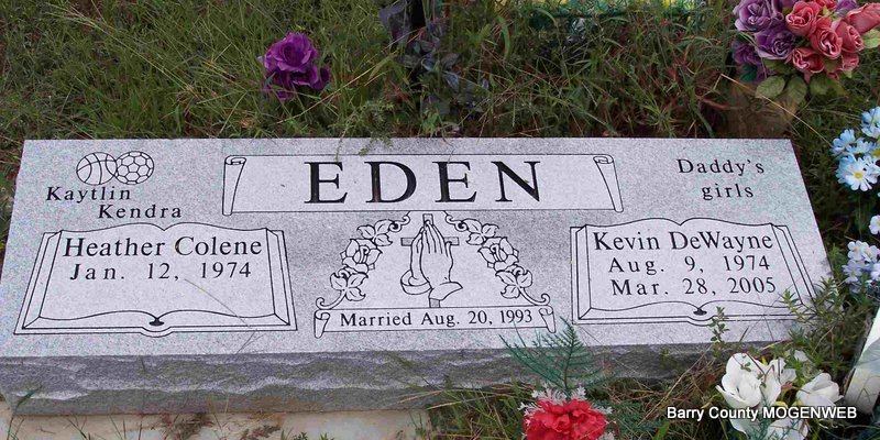 | EDEN, Heather Colene (SNOOK) | Jan. 12, 1974 | No Date | SSW: Kevin DeWayne - Inscription: "Married Aug. 20, 1993" | Photo Diana Cope |