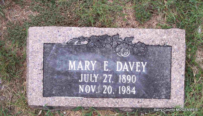 | DAVEY, Mary E. | July 27, 1890 | Nov. 20, 1984 | No Data | Photo Diana Cope |