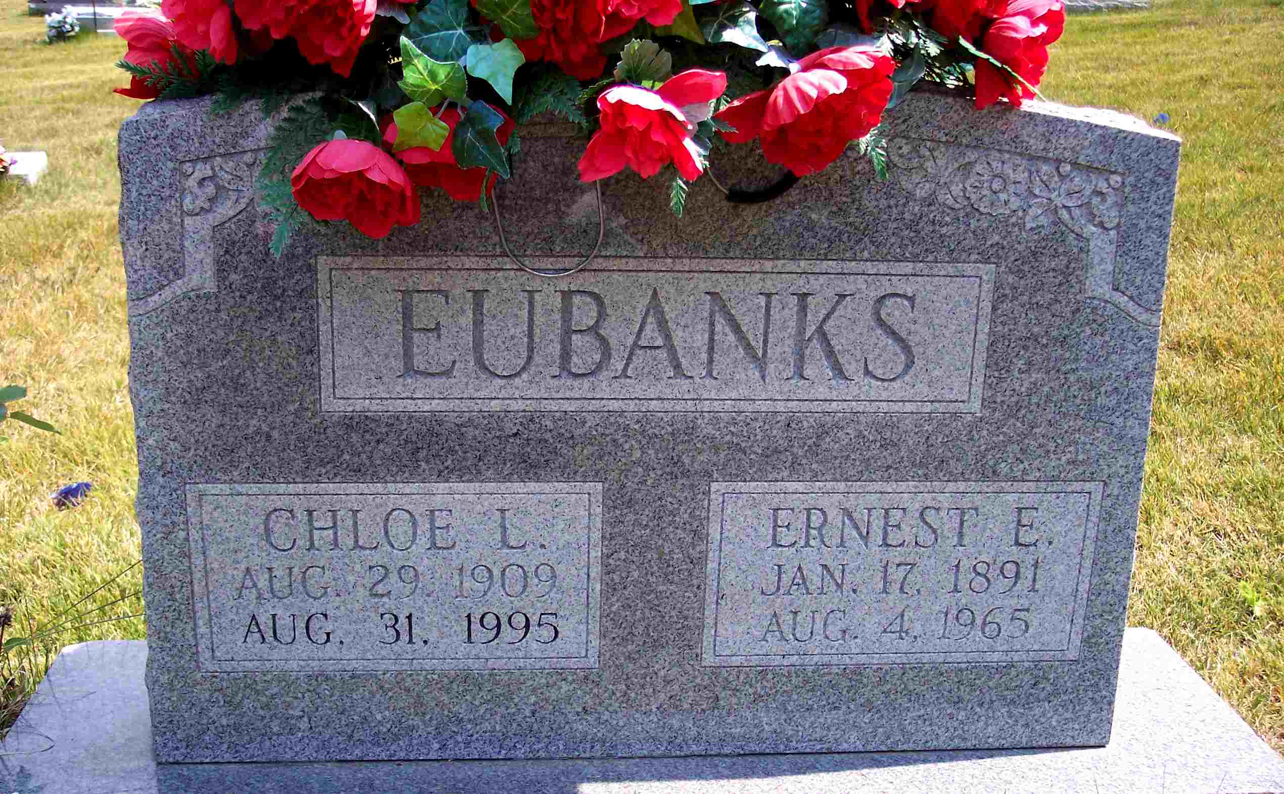 SSW: Nettie L. - Research Note: Nora's post had Apr. 8, 1975 as a death date, stone reads Apr. 5th. - Inscription: "Married Sept. 27, 1923" - Nora's Research Note: He was a son of James Jackson Eden and Sarah Melvina (Evans) Eden who were also buried at Clio. Husband of Nettie Levonia Swearingen Eden, father of Harold James Eden. | Note Nora Eden Photo Diana Cope |