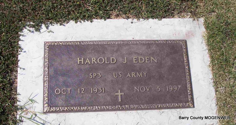 | EDEN, Harold James | Oct. 12, 1931 Cape Fair, Stone Co., MO |