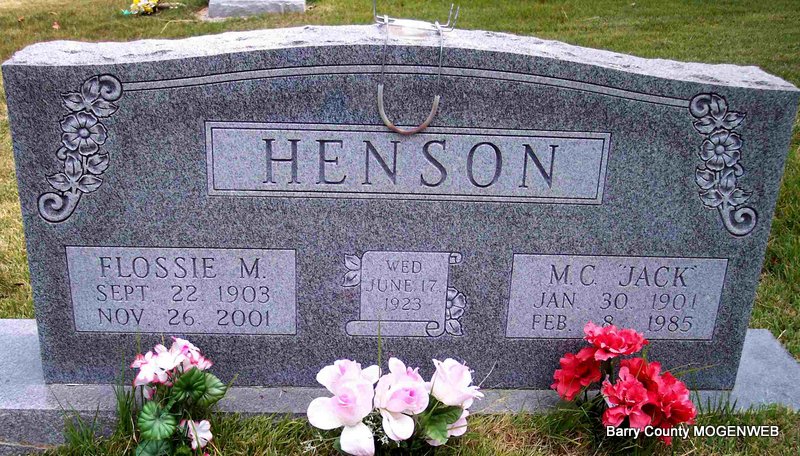 SSW: Clarence A. - Research Note: Daughter of Joel Isaac Henson and Nancy M. Wilson. Clarence A. Huse, age 21, married Anna Henson, age 18, on Nov. 15, 1914 in Barry Co., MO. SSDI gives her death date and place. Not buried here. There is a memorial at findagrave.com with a photo of a stone for Carrie Anise Huse, same birth and death dates. Glenn Rest Cemetery, Glenns Ferry, Elmore Co., ID. Her daughter, Arville May (Huse) (Hilton) Stokesberry, died in 1983 and is buried at Glenn Rest Cemetery. | MO Marriage Records Census SSDI findagrave.com Phyllis Long Photo Diana Cope |