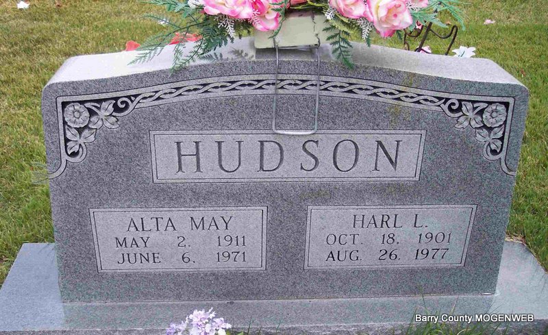 | HUDSON, Harold "Harl" Luther | Oct. 18, 1901 | Aug. 26, 1977 | SSW: Alta May - Research Note: Son of James William Hudson and Sarah Hannah Doty. | Census Phyllis Long Photo Diana Cope |