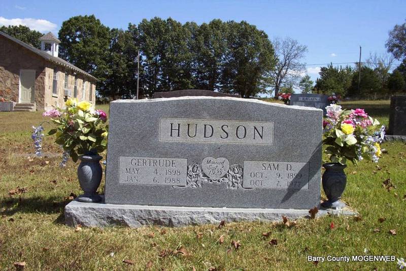 | HUDSON, Samuel "Sam" David | Oct. 9, 1899 | Oct. 7, 1977 | SSW: Gertrude - Inscription: "Married Sept. 2, 1925" - Research Note: Son of Joseph Nunley Hudson and Ada Cora Maxwell. - Another Photo | Note Phyllis Long Photos Diana Cope |