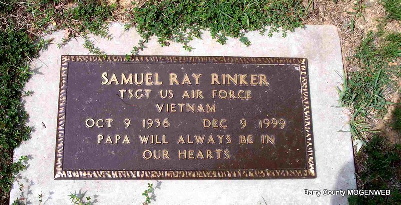 | RINKER, Samuel Ray | Oct. 9, 1936 Jenkins, Barry Co., MO |