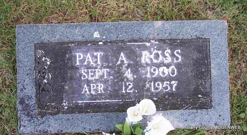 | ROSS, Patrick Arvel | Sept. 4, 1900 Jenkins, Barry Co., MO |