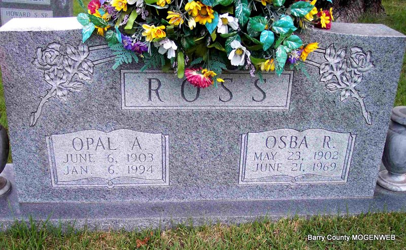 SSW: Osba R. - Research Note: Daughter of Charles Lewis Smith and Sarah Drucilla Perriman. Opal Smith married Osba Ross on Apr. 19, 1923 in Cato, Barry Co., MO. | MO Marriage Records Census Phyllis Long Photo Diana Cope |