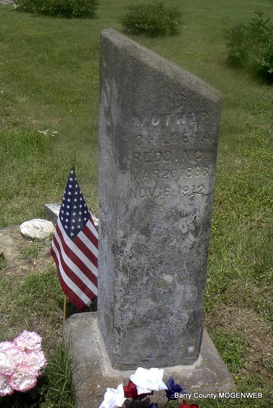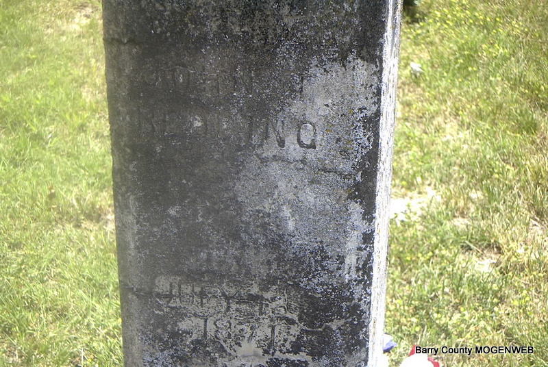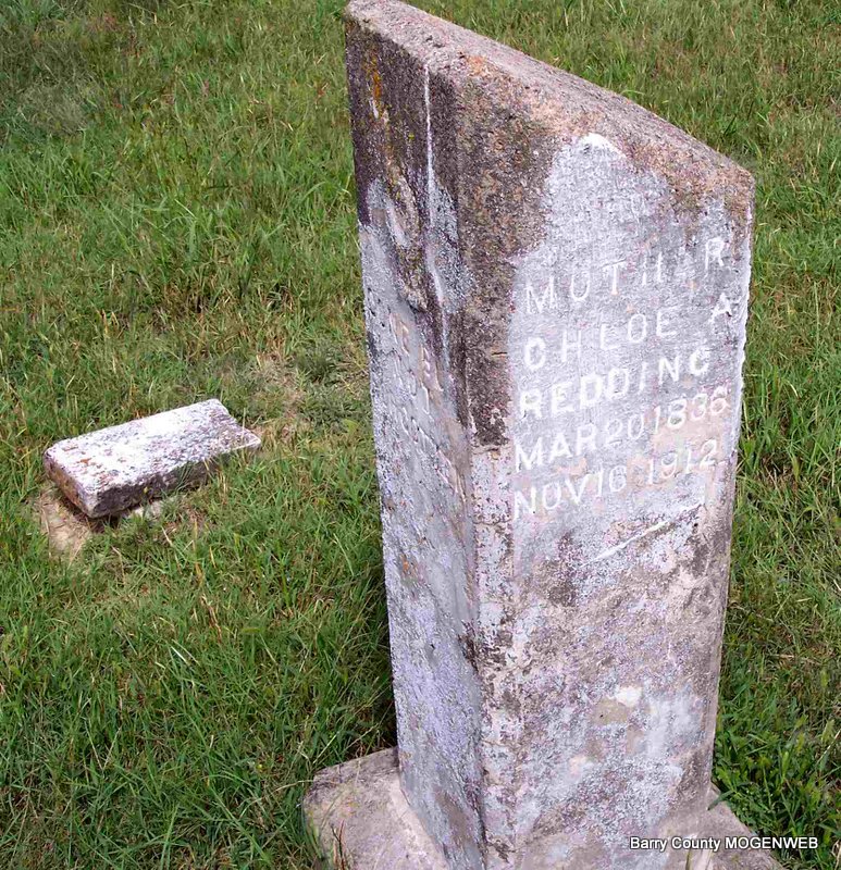 SSW: Chloe - Inscription: "Father" - Research Note: The date posted by Carol was July 18, 1871. Stone reads July 13, 1871. - Son of Thompson Redding born Charlotte Co., VA and Susan Carter. Civil War Veteran: Company E, 27th Arkansas Infantry, Private, Confederate. John enlisted in the Confederate Forces while living in Carrolton, Arkansas in 1862. He was taken prisoner late in the war and patrolled at Shreveport, LA in 1865. When he returned home to Arkansas, he discovered his wife and family had moved to Barry Co., MO. He rejoined them there. - Another Photo | Confederate Soldier History Phyllis Long Photo Carol Wilkerson Photo Diana Cope |