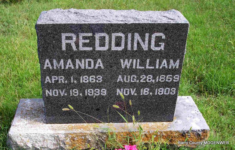 SSW: Amanda - Research Note: Carol's post had Nov. 10, 1903 as the death date, stone reads Nov. 16, 1909. He was a son of John T. Redding and Chloe Adaline Capps. Husband of Amanda Perriman. - Another Photo | Note Photo Carol Wilkerson Photo Diana Cope |