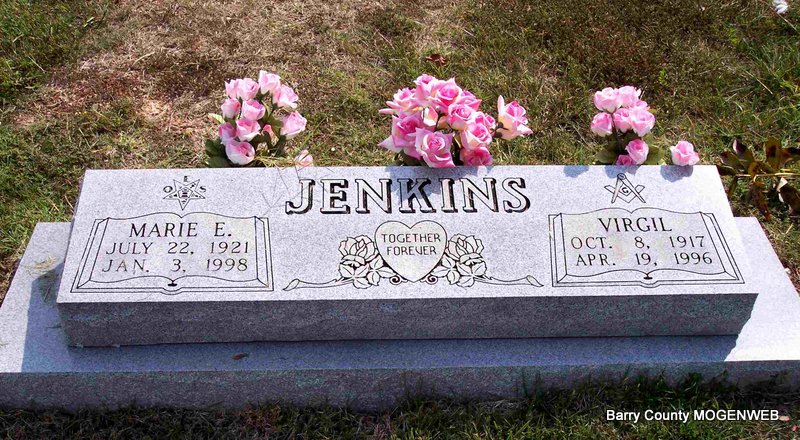 SSW: Marie E. - Research Note: He was a Mason. Lois' post had his birth date as Oct. 10th, stone reads Oct. 8th. - Son of Eldridge Jenkins and Ella Vaughan. | Headstone Lois J. Herron Census Phyllis Long Photo Diana Cope |