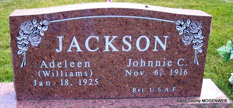 | JACKSON, Adeleen (WILLIAMS) | Jan. 18, 1925 | No Date | SSW: Johnnie C. | Photo Diana Cope |