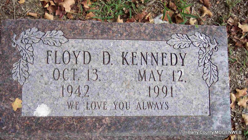| KENNEDY, Floyd DeLoyd | Oct. 13, 1942 | May 12, 1991 | Inscription: "We Love You Always" - Research Note: Son of Earnest Kennedy and Myrtle May Hollacher. | Mother's Obit Phyllis Long Photo Diana Cope |