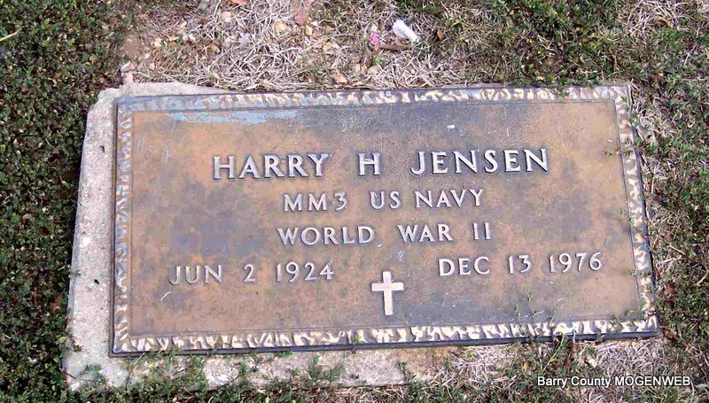 Inscription: "MM 3 US NAVY WORLD WAR II" - Research Note: Son of Jens William Jensen and Addie Edith McCloughan. | Census Phyllis Long Photo Diana Cope |