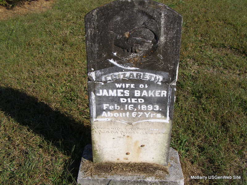 | BAKER, Elizabeth | Abt. 1826 | Feb. 16, 1893 | Inscription: "Wife of James - About 67 Years" - Research Note: This stone is broken. | Photo Ralph & Betty Lamberson |