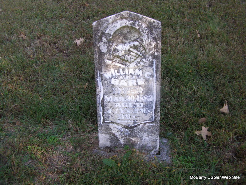 | BARE, William C. | Abt. 1838 | Mar. 30, 1882 | Inscription: Aged 44 Ys. 5 Mos. 3 ds." | Photo Ralph & Betty Lamberson |