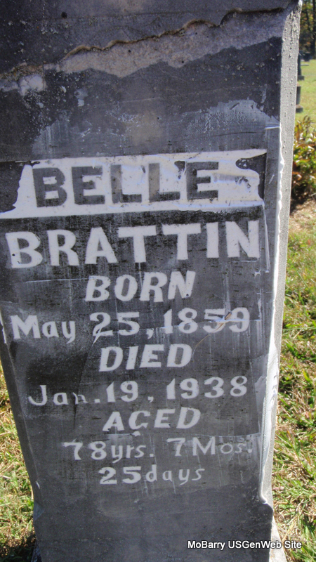 | BRATTIN, Dora Bell (BARNETT) | Aug. 11, 1870 MO |