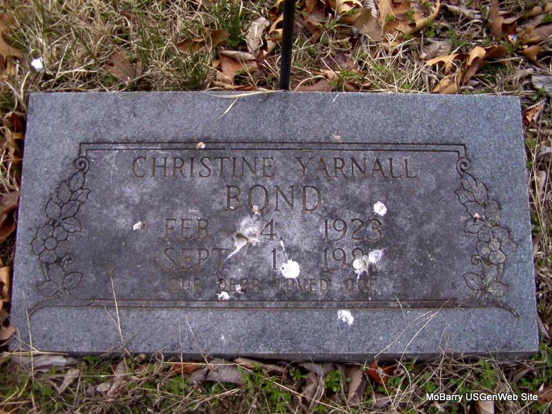| BOND, Christine Edith (YARNALL) | Feb. 4, 1923 | Sept. 1, 1987 Los Angeles Co., CA |