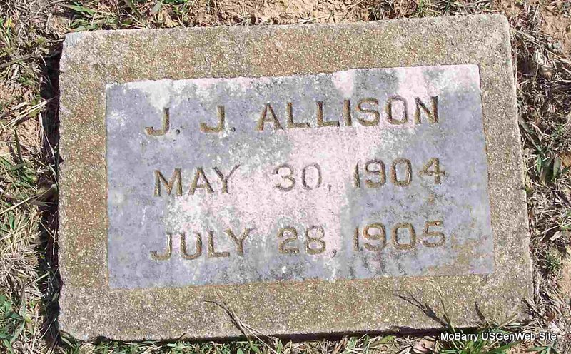 | ALLISON, J. J. | May 30, 1904 | July 28, 1905 | Research Note: Child of Gabriel Price "Bud" and Nancy C. "Tina" Allison. | Note Phyllis Long Photo Diana Cope |