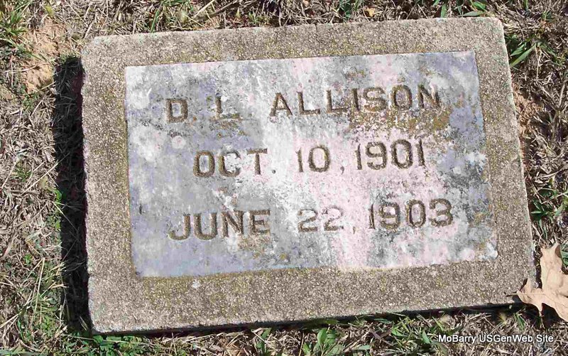 | ALLISON, D. L. | Oct. 10, 1901 | June 22, 1903 | Research Note: Child of Gabriel Price "Bud" and Nancy C. "Tina" Allison. | Note Phyllis Long Photo Diana Cope |