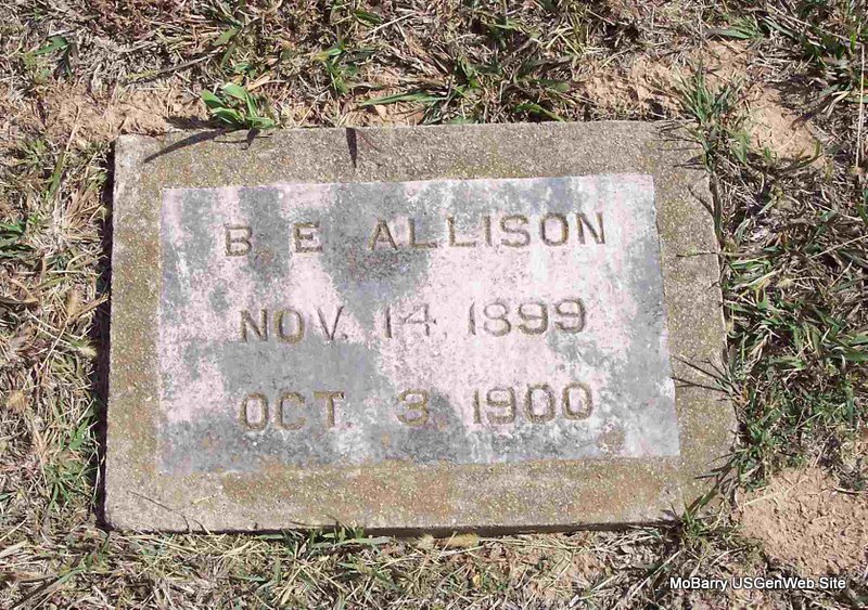 | ALLISON, B. E. | Nov. 14, 1899 | Oct. 3, 1900 | Research Note: Child of Gabriel Price "Bud" and Nancy C. "Tina" Allison. | Note Phyllis Long Photo Diana Cope |