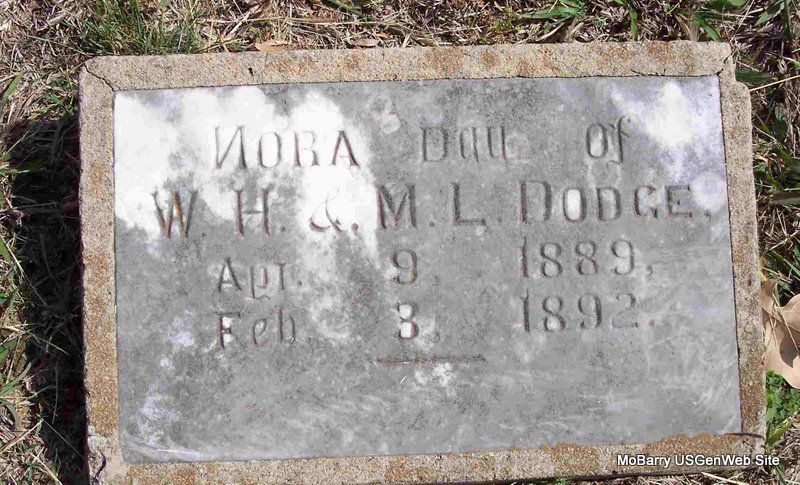 | DODGE, Nora | Apr. 9, 1889 | Feb. 3, 1892 | Inscription: "Dau. of W. H. and M. L." - Research Note: Nora was the daughter of William Hunter Dodge and Martha L. Allison. | Note Phyllis Long Photo Diana Cope |