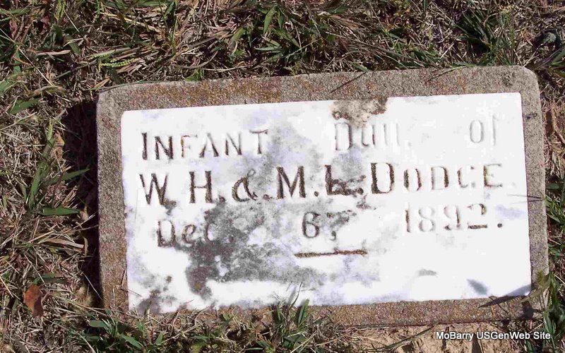 | DODGE, Infant | No Date | Dec. 6, 1892 | Inscription: "Infant Dau. of W. H. and M. L." - Research Note: Daughter of William Hunter Dodge and Martha L. Allison. | Note Phyllis Long Photo Diana Cope |