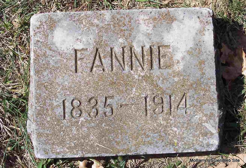 | BEAVER, Fannie (DENNIS) | Sept. 17, 1886 | Dec. 21, 1906 | SSW: James - Research Note: James L. Beaver, age 27, married Fannie Dennis, age 17, on Mar, 31, 1906 in Barry Co., MO. - April 7, 1906, Cassville Democrat - James. L. Beaver and Miss Fannie Dennis married by Rev. James Swiger. - Cassville Democrat, December 29, 1906 - Mrs. Jas. Beavers of the Pasley neighborhood died Dec. 21, 1907 of fever. The remains were laid to rest in the Huff Cemetery. | MO Marriage Records Phyllis Long Online Obit Online Newspapers Photo Diana Cope |