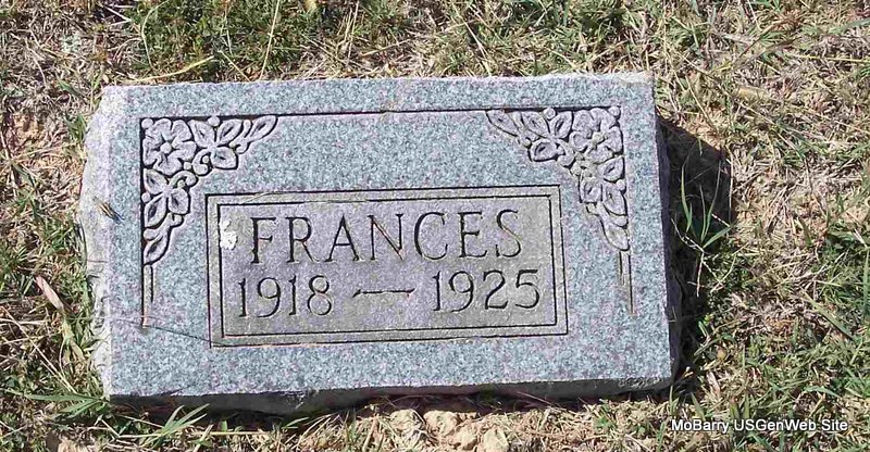 Research Note: Daughter of Price "Bud" Allison, born Henry Co., MO and Tina Phillips, born MO. M. H. Hessie of Cassville, MO was the informant. TB was the cause of death. The death certificate gives burial in Mineral Springs Cemetery but the obit has Corinth Cemetery. Also has her birth date as Sept. 14, 1898. Stone has Sept. 23, 1897. Her parents Gabriel Price "Bud" Allison and Nancy C. "Tina" Phillips are buried in Corinth Cemetery. - June 16, 1917, Cassville Democrat - The sad announcement of the death of a young girl was made Monday morning and the sympathy of the many friends of the family in this city and neighborhood went out to the bereaved family in their great bereavement. The death angel beckoned the spirit of Miss Myrtle Allison to come up higher to a place of stern all blessedness and felicity and she obeyed the summons Sunday night, June 10, at 9 p.m. at the Allison home northeast of this city of tuberculosis, aged 16 years. She was a daughter of Mr. and Mrs. Bud Allison northeast of this city. Funeral services were conducted at Corinth Baptist Church Monday afternoon and the remains were laid to rest in the cemetery there. She had been sick for sometime. | Death Certificate Online Obit Phyllis Long Photo Diana Cope |
