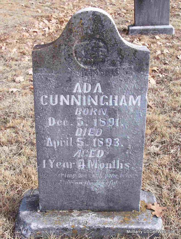 | CUNNINGHAM, Ada | Dec. 5, 1891 | Apr. 5, 1893 | Inscription: "Aged 1 year 9 months" | Photo Diana Cope |