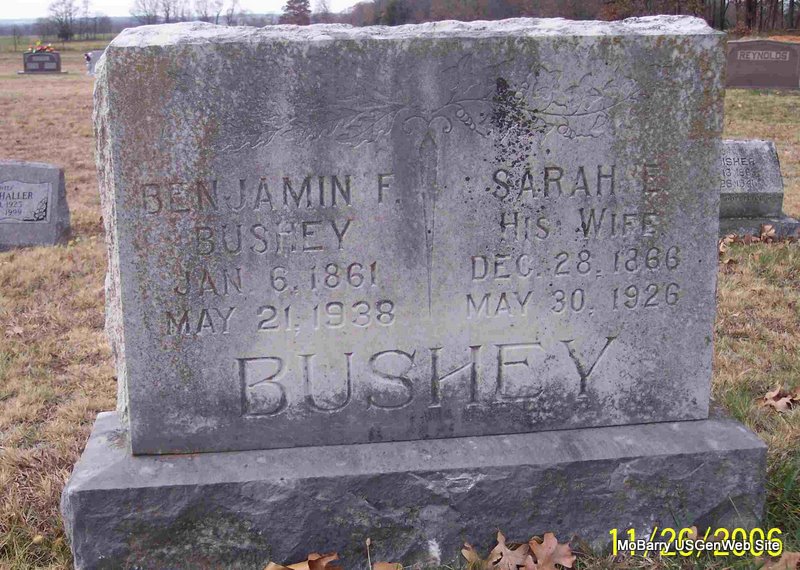 SSW: Elizabeth - Research Note: Son of William Babb and Mary Brown. Samuel moved to OK to live with his son after the death of his wife. He was a Methodist minister. His body was returned to MO for burial. - Cassville Republican, March 9, 1911 - Aged Minister Passes Away: Rev. Samuel Babb died at the home of his son, J. W. Babb, at Hugo, Okla., Friday, March 1, 1911, at the advanced age of 83 years, of general debility. Samuel Babb was born in Tennessee, April 10, 1829. There he grew to manhood undergoing all the hardships and privations of the early pioneers. At the age of nineteen years he professed faith in Christ and at twenty-three he was ordained to preach and became an active minister. He preached his last sermon when 81 years old. The sermon was preached at the request of friends of Grant, Okla., where he then lived. He was married to Miss Elizabeth Roberts in Tennessee in 1848. Mrs. Babb died a few years ago. To them were born ten children, two of whom died in infancy, the remaining eight are living. The are Mrs. Sarah Lowder, Cassville; J. W. Babb, Hugo, Okla.; Miss Rhoda Babb, Washburn; Mrs. Minta Wallen, Fairland, Okla.; Mrs. Lena Hefley, Cassville; Mrs. Tina Bradley, Miami, Okla.; M. B. Babb, Cassville; Mrs. Laura Ezra, Mt. Vernon. As a great many other Tennesseans did, he caught the desire to move west and came to Missouri. For about thirty years the family has lived in Barry County. Samuel Babb was a man who in every sense of the term lived up to all the tenets of the Golden Rule. He was a conscientious Christian gentleman, a man of earnest convictions and a man of deep religious temperament. His friends were always number by his acquaintances. The body was shipped to Cassville and buried at the Corinth Cemetery after funeral services held Saturday afternoon by Rev. J. W. Ennes. - From B. F. Babb, descendant of Samuel's daughter Rhoda - Samuel established a Methodist Church south of Cassville at Corinth. The land was given to him by Doc Hefley. B. F. says the church is still there. It is now called Corinth Community Church. The cemetery where Samuel and Elizabeth are buried is nearby. - Babb Family History | Online Obit Jan McClintock Photo Diana Cope |