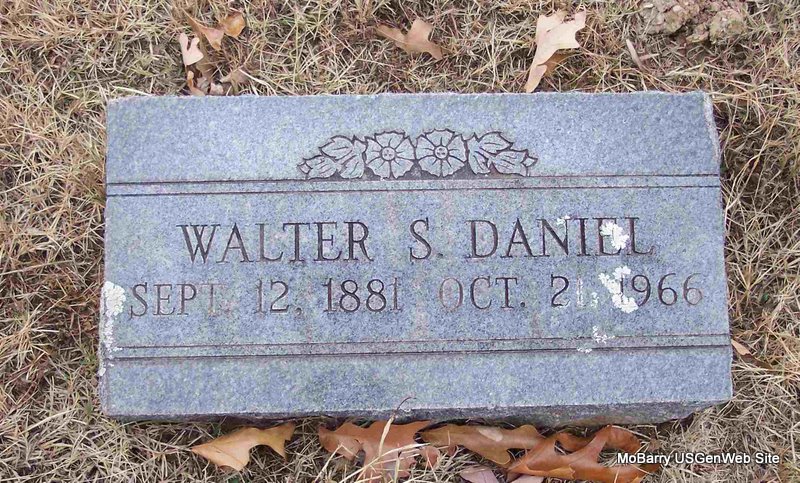 | DANIELS, Walter Summers | Sept. 12, 1881 | Oct. 21, 1966 | Research Note: Son of John Thomas Daniels and Martha Ellen Yocum. His first wife was Joella Morton. Second wife, Bertha Payne. Bertha first married George C. Smiley. Third husband was Mr. Eberhart. Bertha is buried next to Walter as Bertha (Daniel) Eberhart. | Note Phyllis Long Photo Diana Cope |