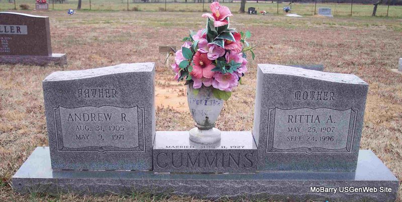 SSW: Rittia A. - Inscription:"Father" "Married June 11, 1927" - Research Note: Son of William Henry Cummins and Annie Maude Morgan. | Census Phyllis Long Photo Diana Cope |