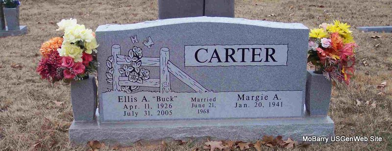 SSW: Edward- Inscription: "Married Oct. 26,1928" - Research Note: Daughter of Reverend James Allen and Artie Elizabeth (Cordell) Carter. - Lorena Margaret (Carter) Ball, age 97 of Seligman, Missouri, passed away Friday, August 5, 2011, in Red Rose Health and Rehabilitation Center, Cassville, Missouri. She was born December 17, 1913 in Eureka Springs, Arkansas, the daughter of Reverend James Allen Carter and Artie Elizabeth (Cordell) Carter. On October 26, 1928, Eureka Spring, she was united in marriage to Edward Ball, who preceded her in death on August 25, 1979. Also preceding her in death were her parents: two sons, Ellery and Ellis Ball: two daughters, Annabelle, in infancy and Ettaree Louise (Ball) Warren; five brothers, (twins) Virgil and Spurgeon, Benny, Ellis and Levi Carter; two sisters, Minnie Crawford and Edith Ball; three grandchildren; one great grandchild and one great-great-grandchild. Surviving are three sons, two daughters, one daughter-in-law, two sisters-in-law, thirty-two grandchildren, sixty-two great grandchildren, seventy-three great-great grandchildren, and two great-great-great grandchildren. Lorena grew up in the Roaring River area, receiving her education at Roaring River School. She was a life-long resident of Barry County and had been a long-time member of Roaring River Baptist Church. Upon moving to Seligman in 1979, she began attending Rock Springs Baptist Church. Burial at Corinth Cemetery, Cassville, MO. | Online Obit Phyllis Long Photo Diana Cope |