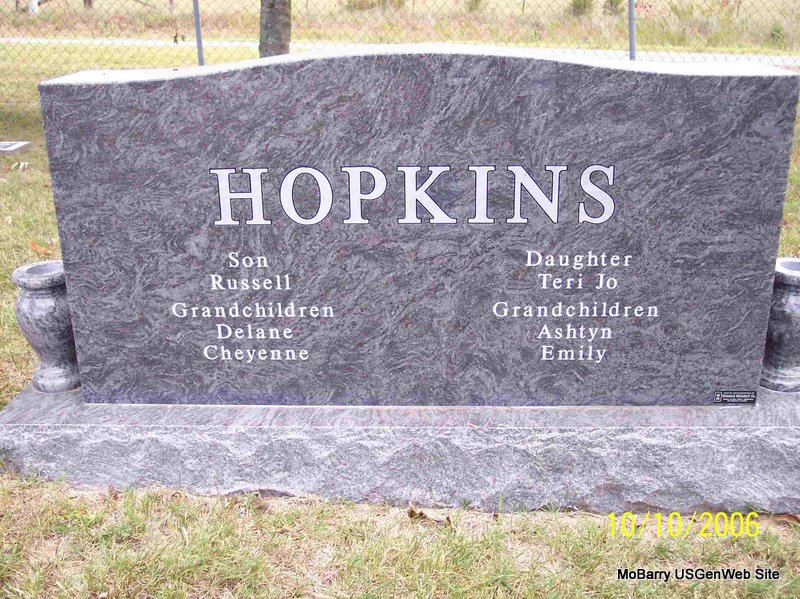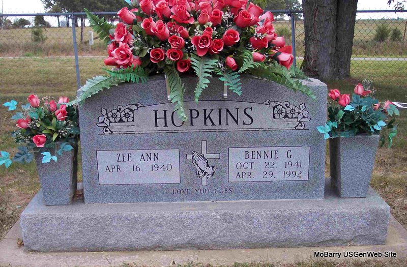 | HOPKINS, Bennie G. | Oct. 22, 1941 | Apr. 29, 1992 | SSW: Zee Ann - Research Note: Son of Gail Garland Hopkins and Nola Marie Stockton. | Census Phyllis Long Photo Diana Cope |
