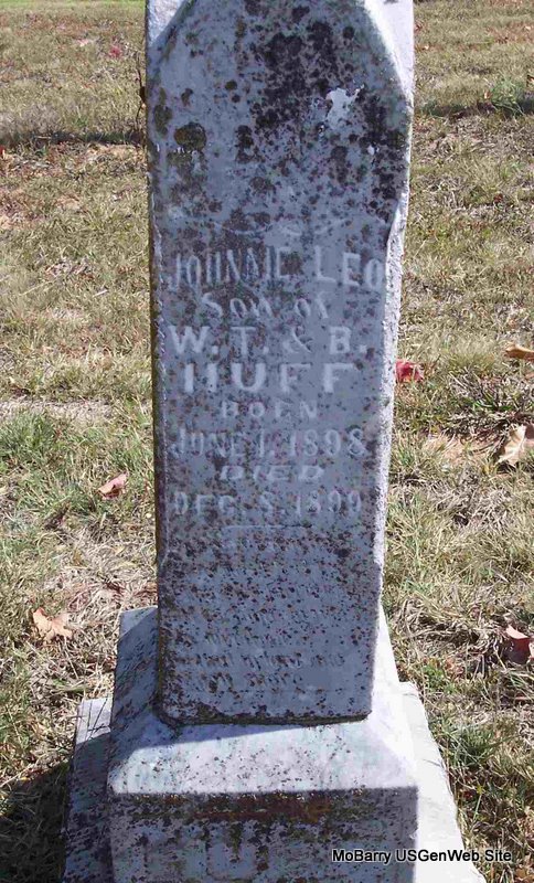 | HUFF, Johnnie Leo | June 1, 1898 | Dec. 8, 1899 | Inscription: "Son of W. T. and B. Huff" | Photo Diana Cope |
