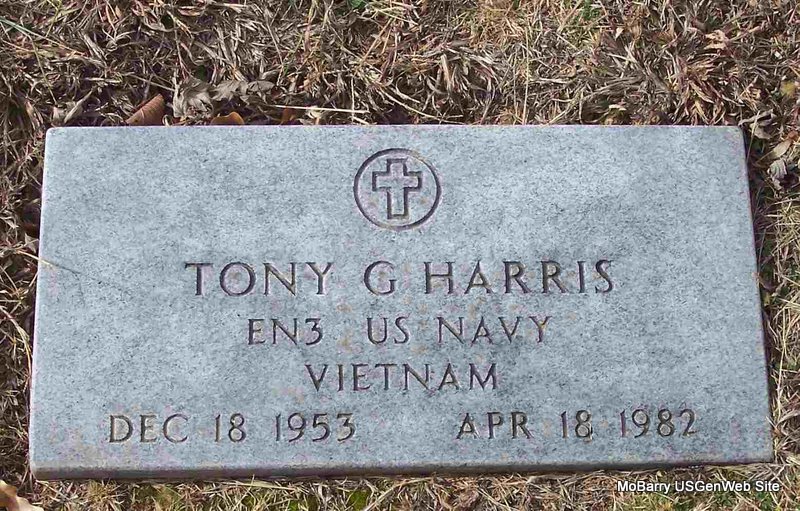 | HARRIS, Tony G. | Dec. 18, 1953 | Apr. 18, 1982 | Inscription: "EN3 US NAVY VIETNAM" - Research Note: Son of Rudolph Harris and Norman Jean Bruton. | Note Phyllis Long Photo Diana Cope |