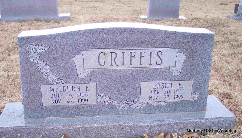 SSW: Melburn E. - Research Note: Daughter of William and Dora (Dolin) Green. She moved to Cassville in 1947 and to Washburn in 1991. She married M. E. "Meb" Griffis on December 20, 1929, in Madison, West Virginia, and he preceded her in death on November 24, 1990. She was preceded in death by one son, Melburn Griffis; two infant daughters, Ina and Marjorie; six brothers, Don Green, Silmer Green, Aubrey Green, Rosary Green, Leslie Green, and Edgar Green; and two sisters, Mary Griffis and Vertie Patterson. | Monett Times Nov. 23, 1999 Mary Homesley Photo Diana Cope |