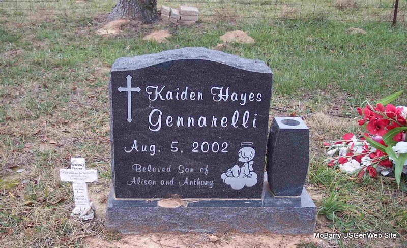 | GENNARELLI, Kaiden Hayes | No Date | Aug. 5, 2002 | Inscription: "Beloved Son of Alison and Anthony" | Photo Diana Cope |