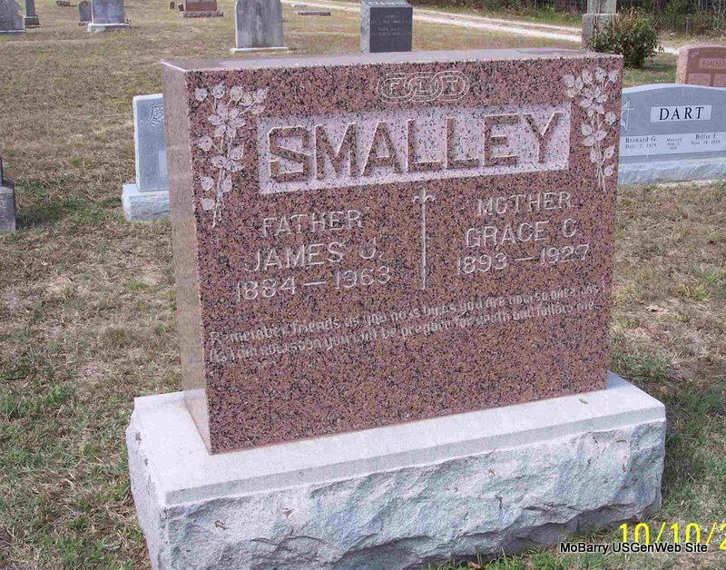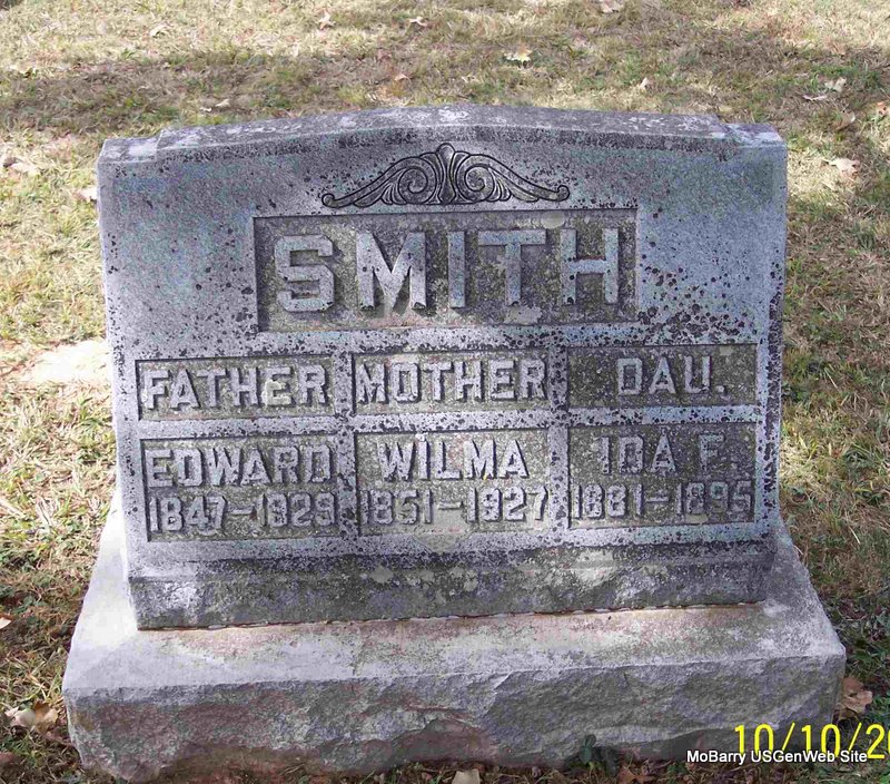 SSW: Edward and Ida F. -Inscription: "Mother" - Research Note: Wife of Edward Smith. Daughter of A. J. Kessinger born KY and Georgia Ann Wade born Christian Co., MO. P. E. Smith of Cassville, MO was the informant on the death certificate. | Death Certificate Phyllis Long Photo Diana Cope |