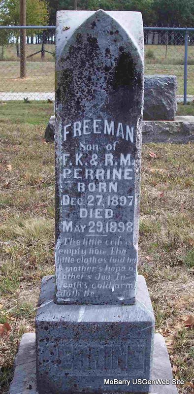 | PERRINE, Freeman | Dec. 27, 1897 | May 29, 1898 | Inscription: "Son of F. K. and R. M." | Photo Diana Cope |