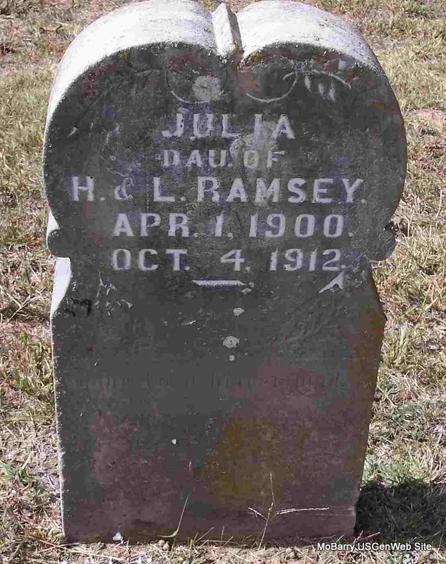 Research Note: She was 8 months, 17 days of age. Her obituary was in the Cassville Republican, Feb. 13, 1896. The services were held by E. W. McCracken. She was buried Feb. 7, 1896 at the Huff Cemetery. The exact grave site has not been located. | Note Beverly Matthews |