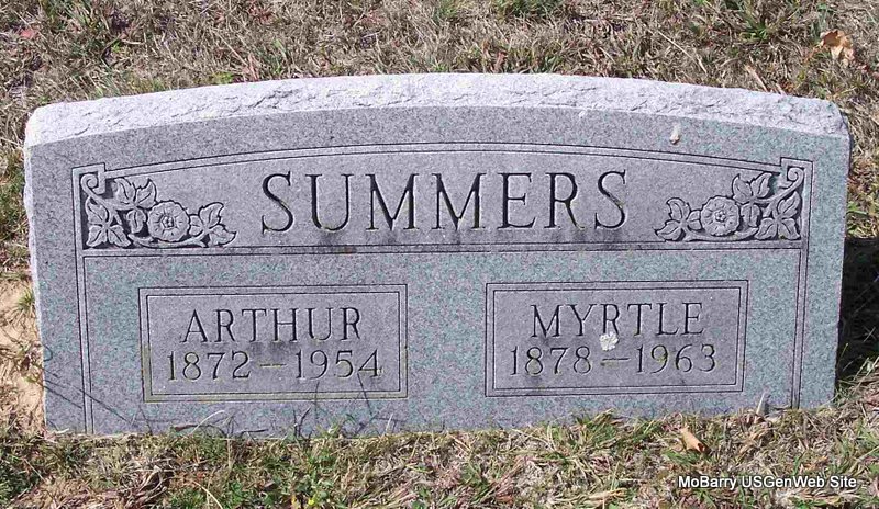 SSW: Myrtle - Research Note: Cassville Republican, October 4, 1900 - Court Docket: Arthur Summers vs. Della Summers, divorce. According to his death certificate his father was John Summers and his mother Mollie Perdue. Myrtle Summers, Cassville, MO, gave the information. - May 20, 1915, Cassville Republican - Delphine, the little three year old daughter of Mr. and Mrs. Arthur Summers, south of town, met with a very painful accident last week. While playing with a pairing knife she struck the point of the blade in her right eye. The wound was thought to be so serious that her local physician advised that she be taken to a specialist. Mr. and Mrs. Summers took her to Springfield where an operation was performed and she is now getting along nicely and the eye will likely be saved. | Death Certificate Donna Cooper Online Newspapers Phyllis Long Photo Diana Cope |