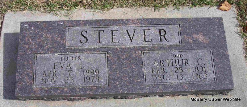 SSW: Eva I. - Research Note: Son of George Stever and Belle Frances Humphrey, both buried at Mano Cemetery. Lived at Cassville, MO. His wife was Eva and she was the informant on the death certificate. - October 29, 1914, Cassville Republican - Mano News: Arthur Stever, Democratic nominee for constable of Roaring River Township returned home Monday of last week after a few weeks stay in Oklahoma. | Death Certificate Online Newspapers Census Phyllis Long Photo Diana Cope |