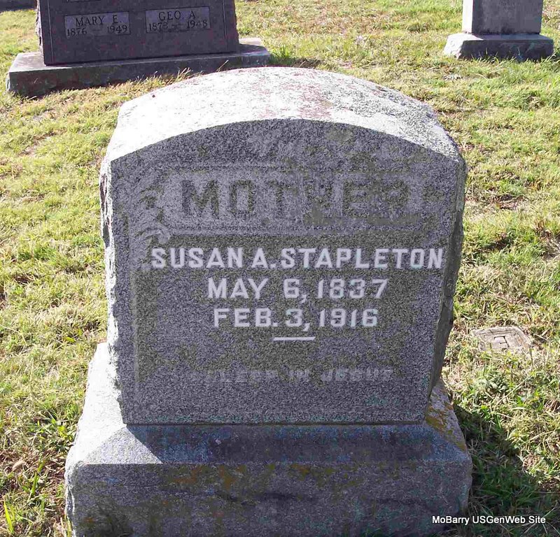 | STAPLETON, Susan A. (SELLERS) (BUCKNER) (MILLER) | May 6, 1837 Texas Co., MO |