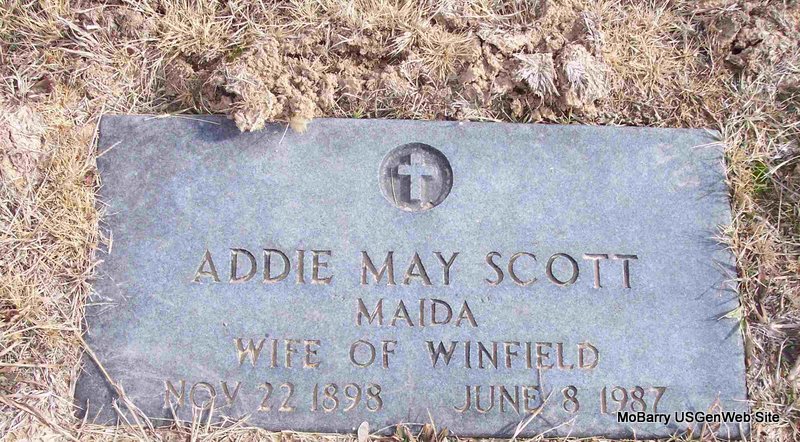 Inscription: "Wife of John Douglas Painter" - Research Note: Beverly says she was the daughter of Richard Jackson Davenport and Louisa Ann Garner, probably correct. Others say her mother was Richard’s second wife Armelda Jane Slaughter. Her tombstone had been buried beneath the surface at her grave site for years, was located in July 1996 and brought to view. It has her name, and dates 1867-1902. She is buried beside the road, that was built after her burial in 1902. There is Davenport and VanDorn children buried in the same locality. Her obituary was in the Cassville Republican, Oct. 9, 1902. There were two write ups about her death. One also telling of an infant babe. - Cassville Republican, Oct. 9, 1902 - Mrs. Doug Painter, north of Cassville, died Saturday and was buried at the Corinth Cemetery. Funeral services were conducted by Rev. Brattin. - Mrs. Doug Painter died Saturday morning at her home north of town. Burial was made in the Corinth Cemetery. Services conducted by Rev. Brattin. The deceased leaves a husband and several children, one an infant babe. - Aug. 12, 1897, Cassville Republican - Stony Point News: J. D. Painter and family partook a grand surprise dinner July 25, near Star, at the home of Mrs. Painter's father, Richard Davenport. About ? persons partook of the luxuries of the ?. It was his 55th birthday. | Census Online Obit Beverly Matthews Online Newspapers Phyllis Long Photo Diana Cope |