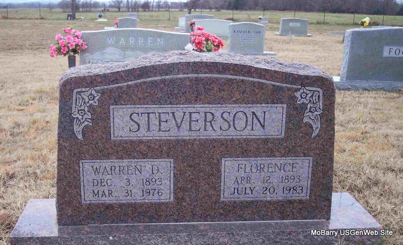 | STEVERSON, Warren D. | Dec. 3, 1893 | Mar. 31, 1976 | SSW: Florence | Photo Diana Cope |