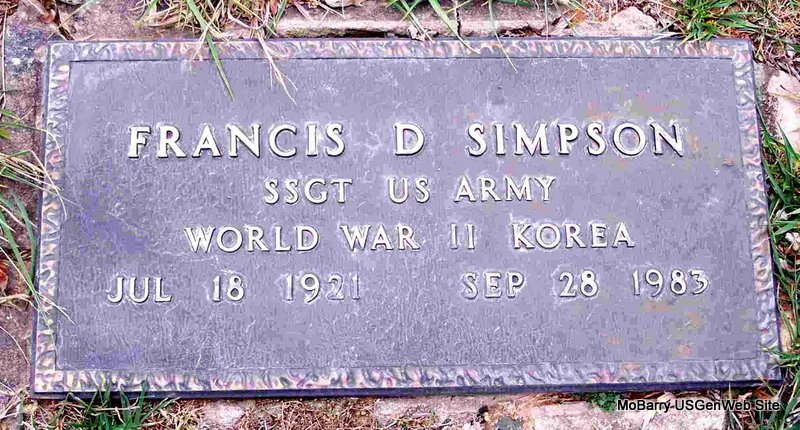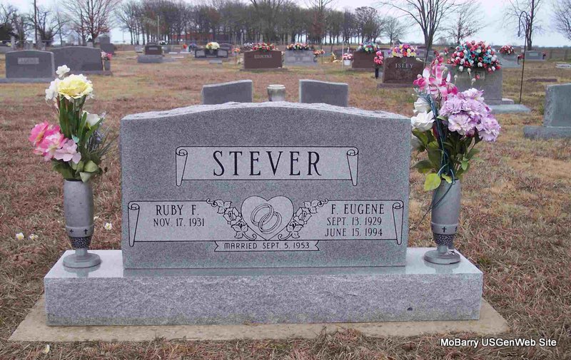 | STEVER, Francis Eugene | Sept. 13, 1929 | June 15, 1994 | SSW: Ruby F. - Inscription: "Married Sept. 5, 1953" - Research Note: Son of Arthur C. Stever and Eva Isabel Holt. | Census Phyllis Long Photo Diana Cope |
