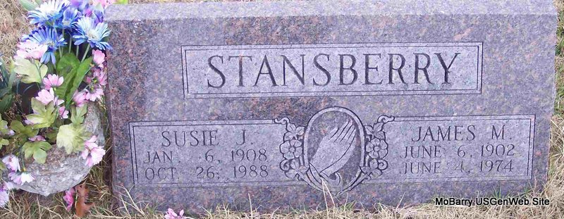| STANSBERRY, James M. | June 6, 1902 | June 4, 1974 | SSW: Susie J. - Research Note: Son of Benjamin C. Stansberry and Mollie Fogg. - Another Photo | Census Phyllis Long Photos Diana Cope |