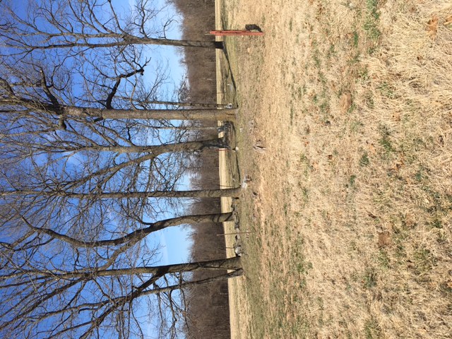 | Brandon's Directions: South east of Washburn, straight north of Seligman. From Highway 37, turn onto Blockade Rd. (FR 1070). The cemetery is in the middle of a field on the Raucstadt (Rauc-A-Bye Farms) property. The cemetery is in a fenced grove of trees. The cemetery is grown up in weeds and thorns. There are only two marked graves in the cemetery. Jay's Directions: To get there, go south on Highway 37 to Washburn. While still in town, turn east on Farm Road 1070. Go several miles until you come to a lane with one of those custom street signs that says "Rauc-A-Bye Lane". Turn left down that lane. Once you come to a "Y", there is a sign that indicates that if you veer left, you go towards the Raucstadt place. Veering right will take you to the Fargo place. Veer left. You will come to the home of Don and Sue Raucstadt. We asked permission from a lady working outside, presumably Sue, and she was very accommodating. We went past her place on a continuing gravel lane. As it went right, we went straight on a dirt path to a red gate. Go through the gate, go left along the fence, and circle right around a grove of trees. As you get around the trees, you can see a small fenced-in enclosure in the middle of the field, with two or three trees. That's it. |